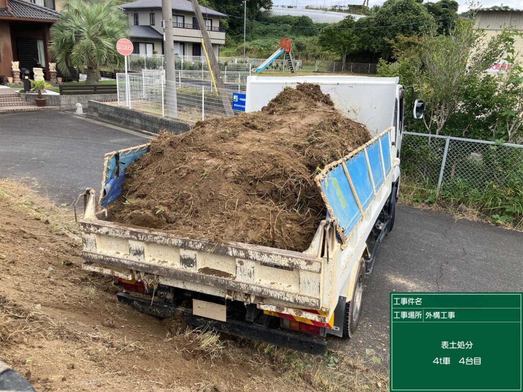 住宅地内なので、大きなダンプカーだと通行の邪魔になるし道路やマンホールを傷めないように3トンとか4トンとかのダンプカーでこまめに何回も残土を運びます。